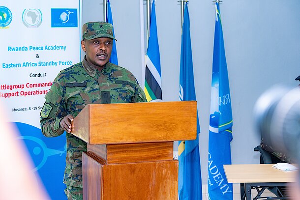 The Battlegroup Commanders in Peace Support Operations Training of Trainers Course commenced today, Monday, 8 September, at the Rwanda Peace Academy (RPA) in Musanze and will conclude on 19 September 2025. The course was funded by the African Peace and Security Architecture (APSA) and is organized in partnership between the Rwanda Peace Academy and the Eastern Africa Standby Force (EASF) Secretariat.