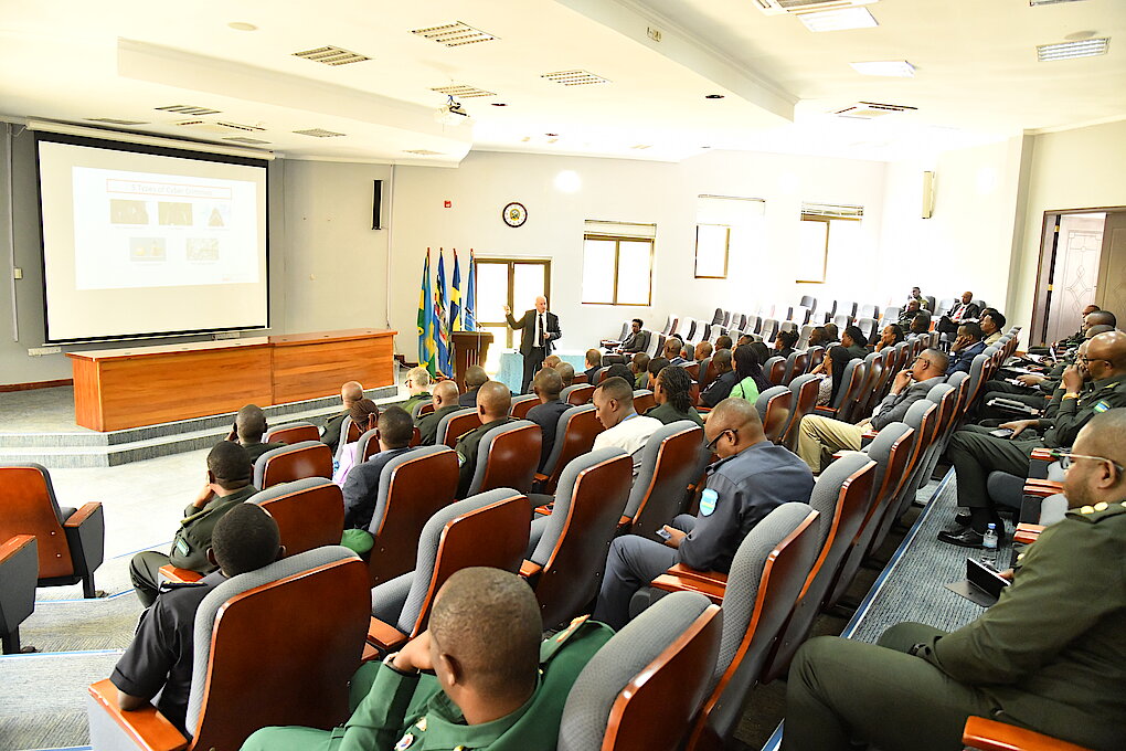 Mr. Ulf Löfven delivers a lecture to military, police and civilian personnel who are currently attending Disarmament, Demobilization and Reintegration Course at the Rwanda Peace Academy.