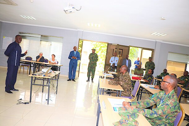 The Director of the Rwanda Peace Academy, Col (Rtd) Jill Rutaremara briefed both generals on the programmes and activities of the RPA. Thereafter, the generals shared some insights on the nature and challenges of contemporary peace missions with 24 military officers from 8 Eastern Africa Standby Force (EASF) member states, who are currently attending the African Union Military Experts on Mission (AUMEOM) Course at the RPA.